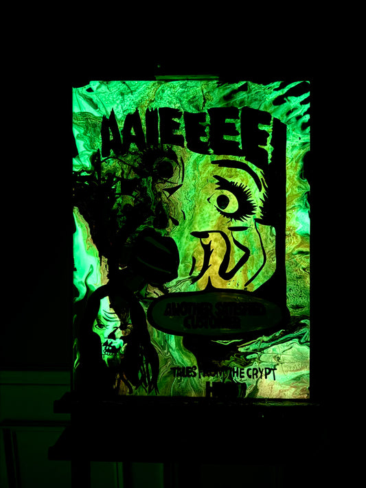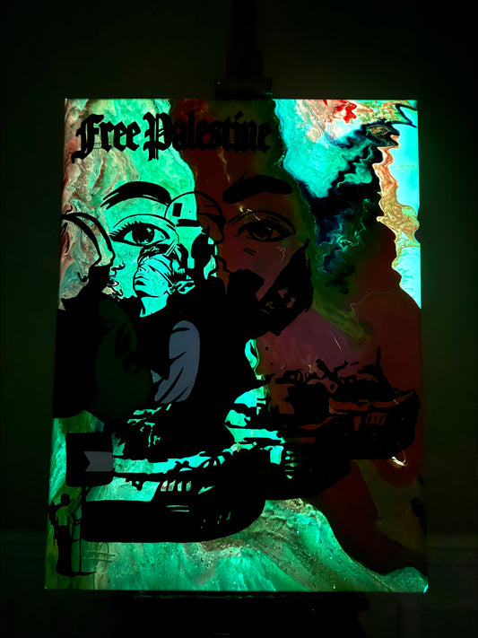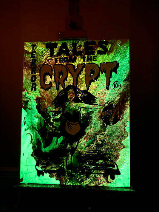 By day, my paintings tell one story—by night, they reveal another. Each piece transforms with a UV light making it your home's most unique art piece